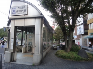 東京都港区西新橋三丁目にある東京都交通局(都営地下鉄)三田線の駅。副称は「東京タワー前」。駅名の由来は、現在の御成門交差点の付近に、かつて徳川将軍家専用の参詣門である「御成門」が設置されていたことによる。駅の近隣には企業や学校が多く立地し、カフェやレストランなどの飲食店も充実している。周辺の教育文化施設は東京慈恵会医科大学・慈恵看護専門学校・音響芸術専門学校・正則高等学校・芝高等学校・芝中学校・御成門中学校・御成門小学校・東京慈恵会医科大学附属病院・NHK放送博物館・港区立みなと図書館など。